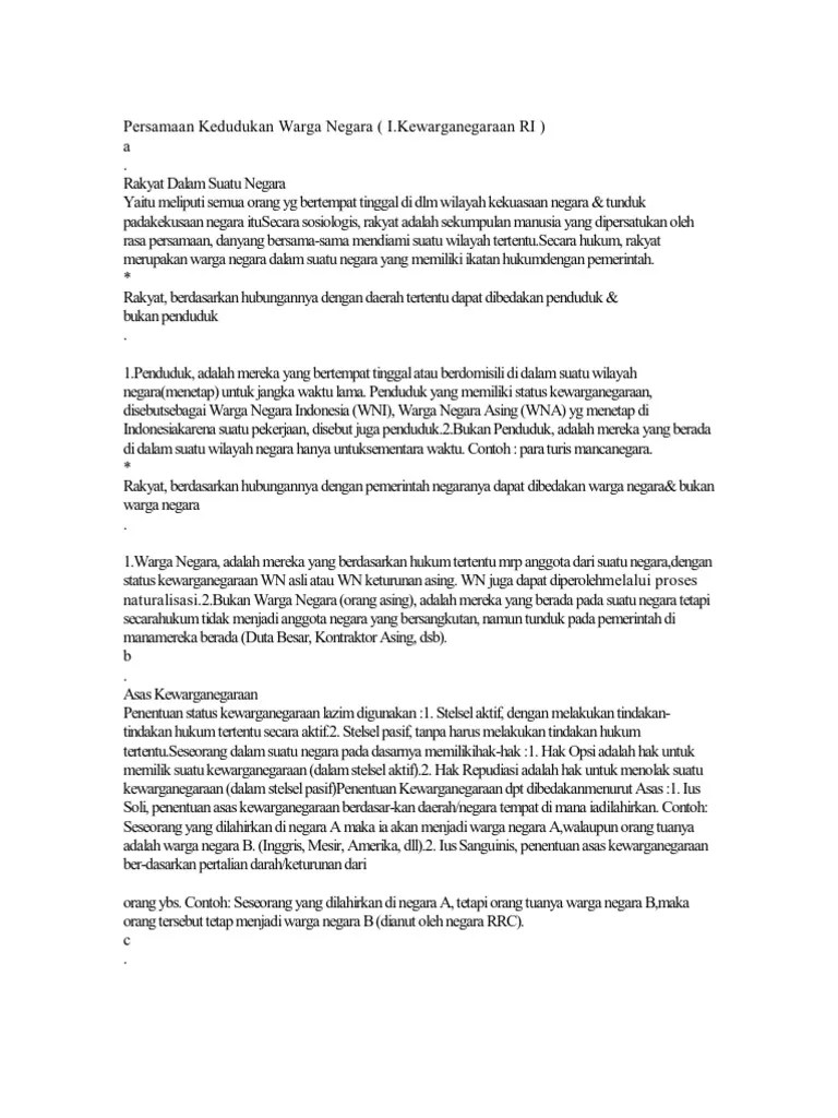 Ayat (3) uud 1945 yang menyatakan: Negara berhak atas pekerjaan dan penghidupan yang layak bagi kemanusiaan. Pengertian dari warga negara adalah penduduk sebuah negara atau bangsa berdasarkan keturunan, tempat kelahiran, dan mempunyai kewajiban dan . Dari perkawinan yang sah, dan ayahnya itu seorang wni. Setelah dibukanya keran bagi partisipasi politik wni keturunan tionghoa menjadikan bentuk partisipasi mereka sangat menarik untuk diamati.