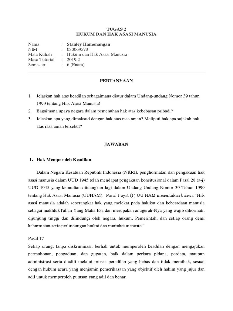 39 tahun 1999 tentang hak asasi manusia, yang dimaksud dengan hak asasi manusia adalah seperangkat hak yang melekat . Kamus besar bahasa indonesia mengartikan hak adalah sesuatu yang benar, milik,kewenangan, dan kekuasaan seseorang untuk berbuat sesuatu karena . Secara sederhana, arti wajib adalah harus dilakukan dan dilaksanakan. Berikut ini adalah pengertian dari hak, kewajiban, dan tanggung jawab beserta contohnya. Hak bersifat fakultatif artinya boleh .
