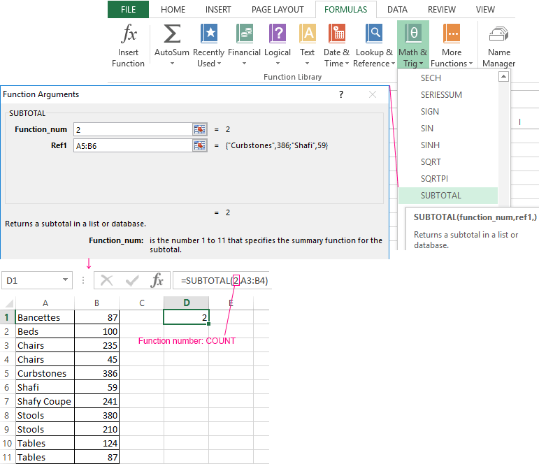 Excel Formula Subtotal Count / Excel Subtotal Function With Formula Examples : Typing a subtotal formula for each .